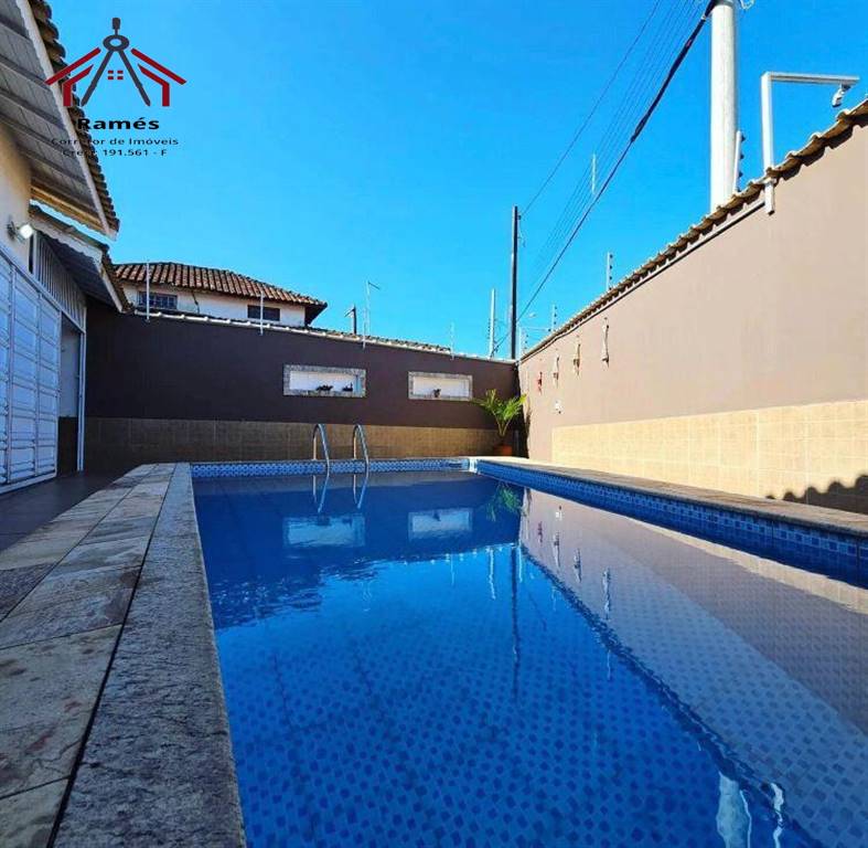 Casa à venda no bairro Caiçara em Praia Grande SP com 3 dormitórios sendo 2 suítes (1 com ar condicionado), 4 banheiros, 1 sala de estar ampla e aconchegante com ar condicionado, 1 cozinha com bastante espaço, 1 área de serviço, 1 área gourmet possuindo churrasqueira, piscina, banheiro individual, câmeras de segurança, cerca elétrica e 2 vagas de garagem (portão automático).
