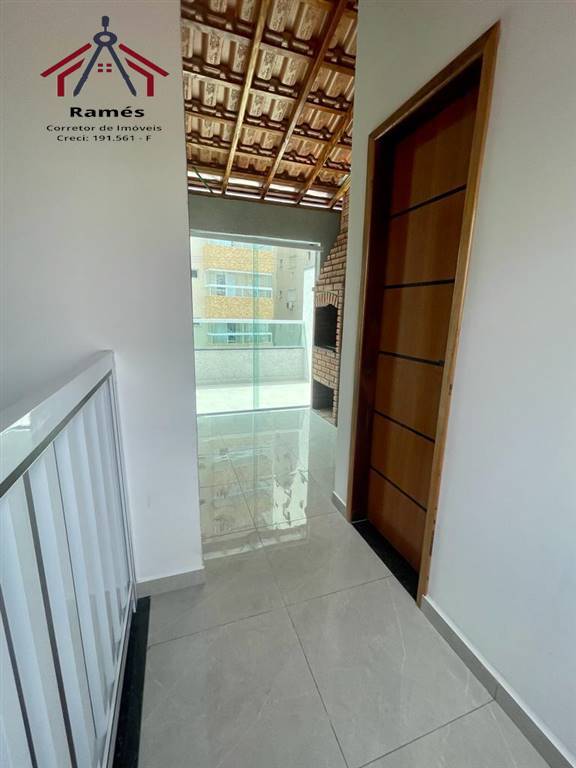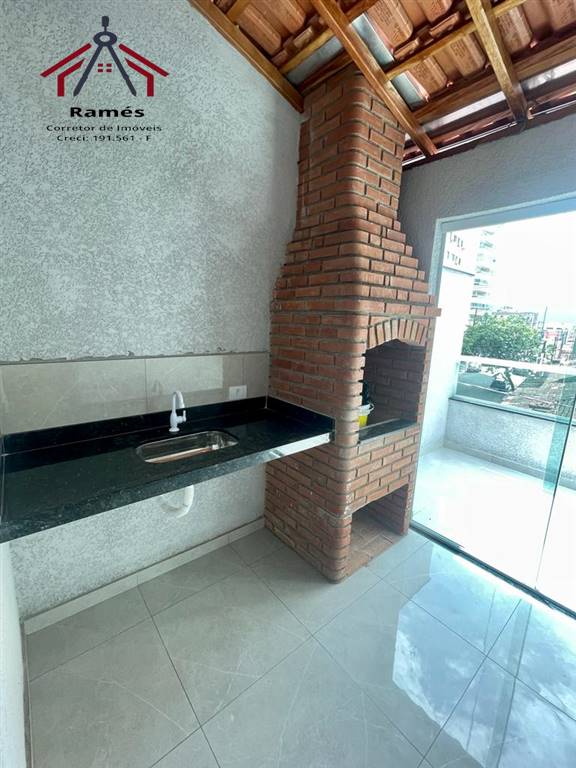 Triplex em condomínio isolado à venda no bairro Aviação em Praia Grande SP com 3 dormitórios sendo 1 com sacada, 2 banheiros, 1 sala de estar ampla e aconchegante, 1 cozinha com bastante espaço, 1 área de serviço, 1 sacada gourmet possuindo churrasqueira, infra para ar condicionados e 1 vaga para veículo.