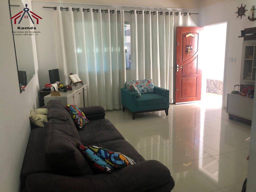 Casa à venda no bairro Caiçara em Praia Grande SP com 3 dormitórios sendo 2 suítes (1 com ar condicionado), 4 banheiros, 1 sala de estar ampla e aconchegante com ar condicionado, 1 cozinha com bastante espaço, 1 área de serviço, 1 área gourmet possuindo churrasqueira, piscina, banheiro individual, câmeras de segurança, cerca elétrica e 2 vagas de garagem (portão automático).