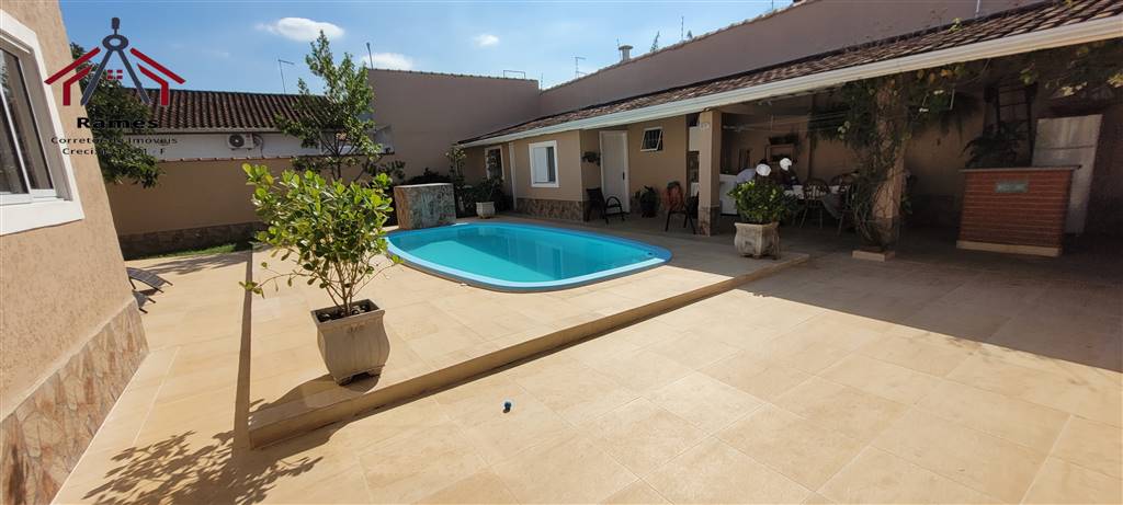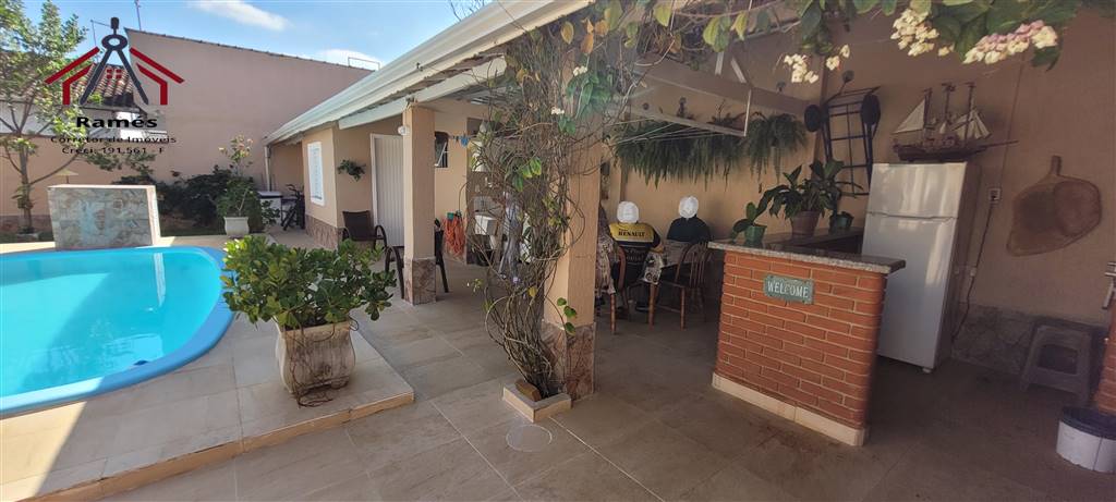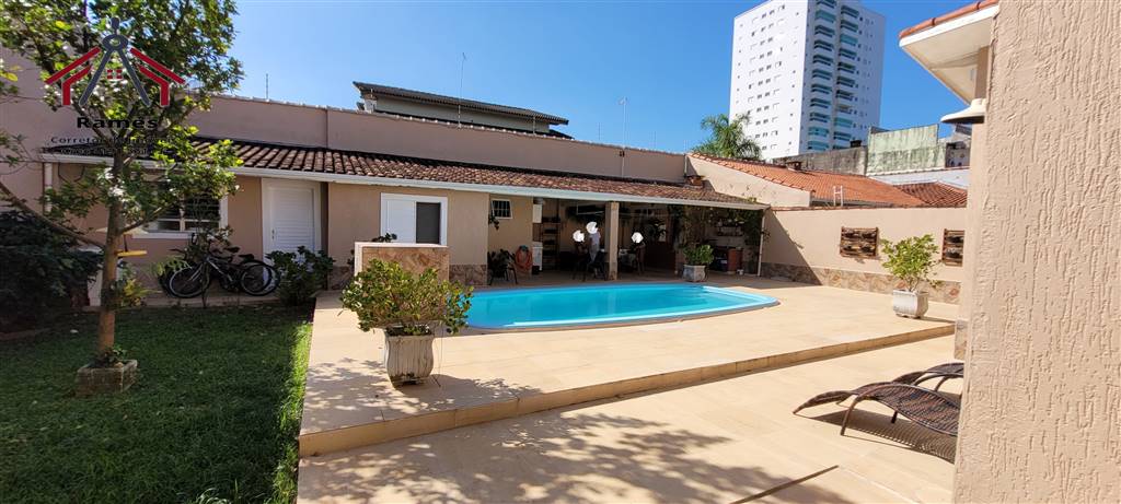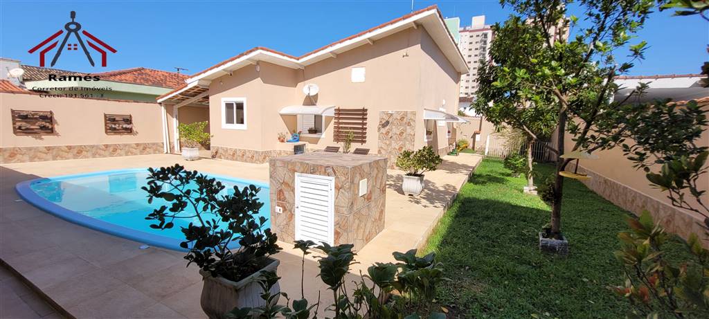 Casa à venda no bairro Flórida em Praia Grande SP com 3 dormitórios, 2 banheiros, 1 sala de estar ampla e aconchegante, 1 cozinha com bastante espaço, 1 área de serviço, 1 área gourmet possuindo churrasqueira, piscina, edícula com suíte, 70m da praia e 4 vagas de garagem.