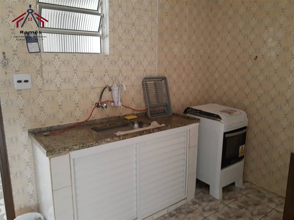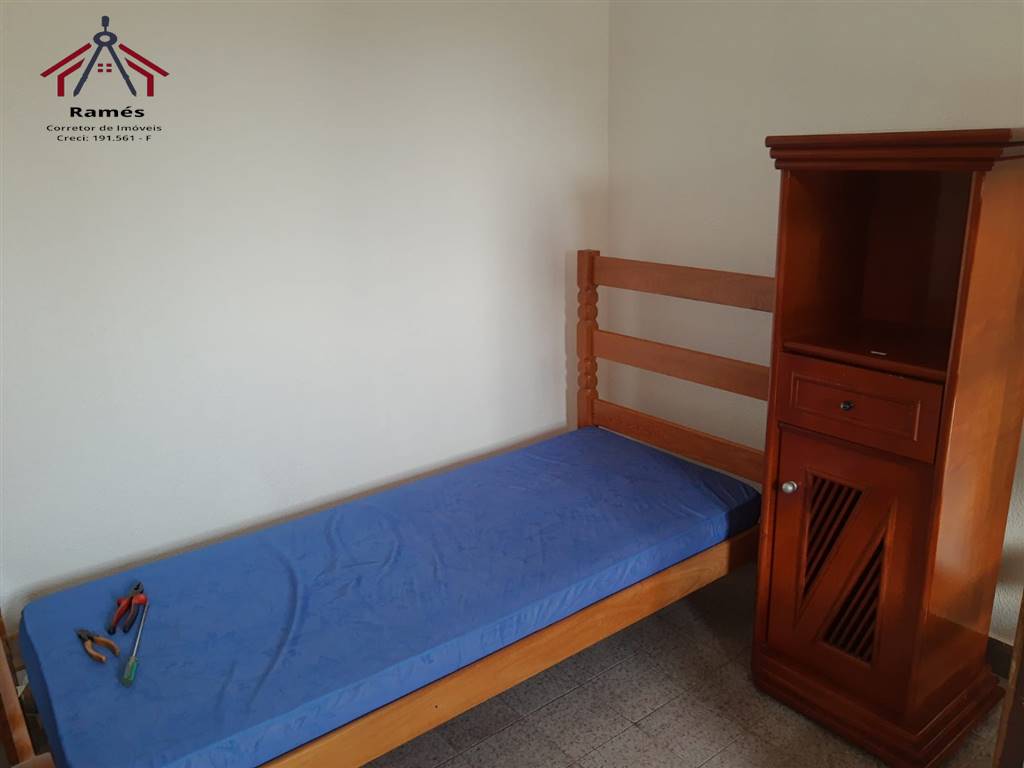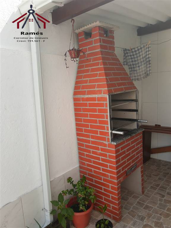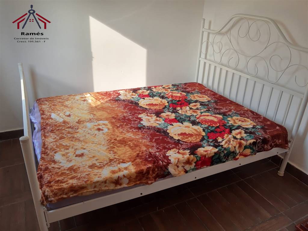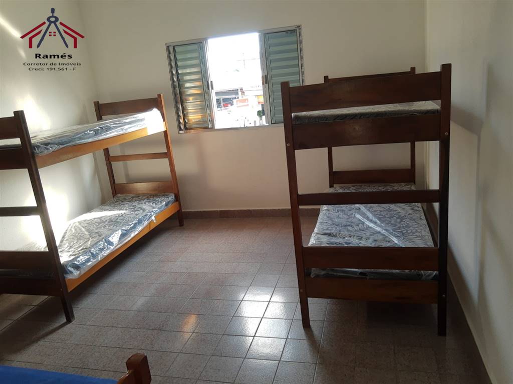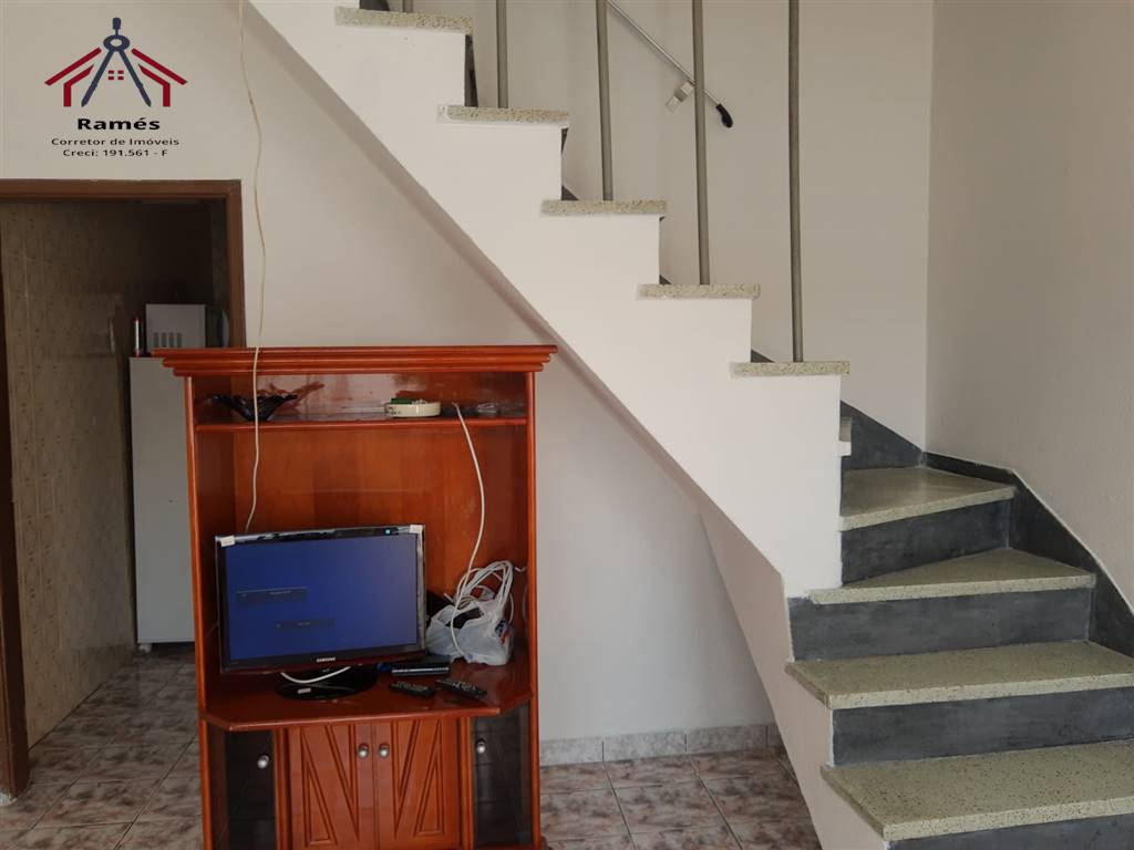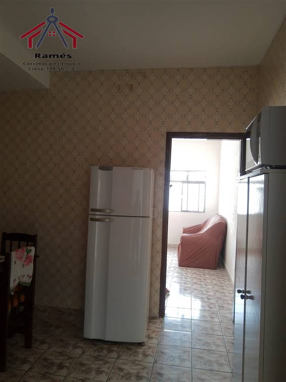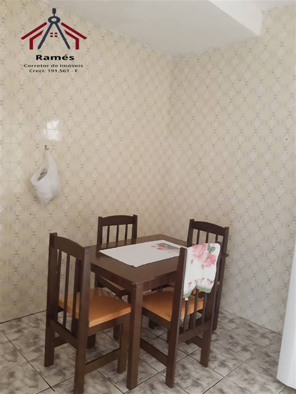 Sobrado mobiliado à venda na Vila Ocian em Praia Grande SP com 2 dormitórios, 2 banheiros, sala, cozinha, área de serviço, quintal reformado e 3 vagas de garagem.